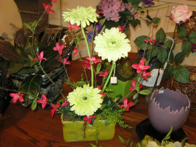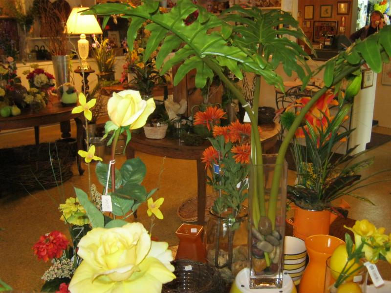 Natural light shows off these creative, airy permanent arrangements and cheery home decorating accessories in the gift gallery at Hatler Florist.